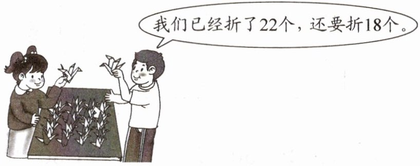 【解析】:已知已经折的数量是$22$个,还要折的数量是$18$个,求一共要折的数量,用加法计算,即$22 + 18 = 40$(个)。