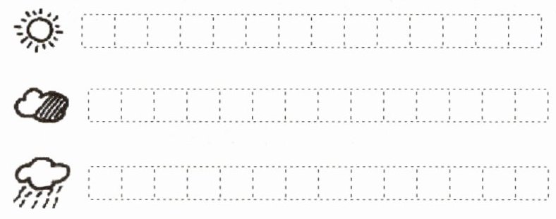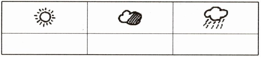 1. 涂一涂:通过观察记录表数出每种天气的数量,晴天有$12$个,阴天有$8$个,雨天有$10$个,然后对应在下面的格子里涂色(由于无法实际涂色,这里主要是理解方法)。