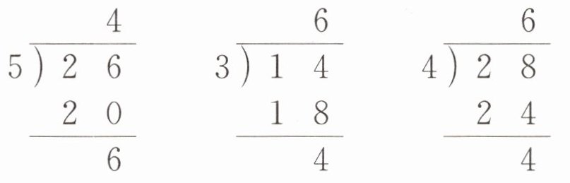 26÷5=5······1 14÷3=4······2 28÷4=7