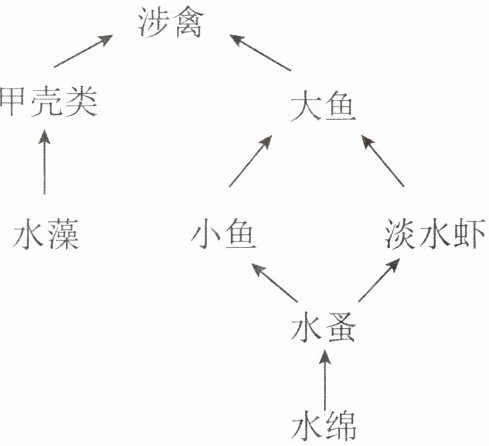 (2)水藻→甲壳类→涉禽(答案不唯一)