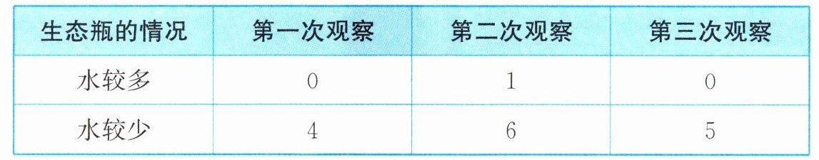 7. 同学们在进行小组观察活动时发现小鱼浮出水面的次数会有不同,记录表如下。