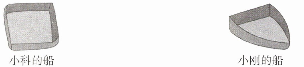 (2)小科的船载重量大。根据排开的水量和浮力的关系,两艘小船的高度相同,小科的船底面积是 10 厘米×10 厘米 = 100 平方厘米,小刚的船底面是三角形,面积是 7 厘米×18 厘米÷2 = 63 平方厘米。小科的船体积大,载重量也就大。(答案合理即可)