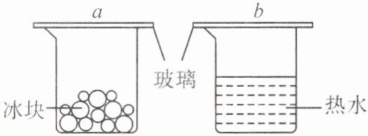 6. 如图所示,常温下两个烧杯,分别盛有冰块和热水,上方均盖有一块玻璃,分别为 a、b,过一会儿(