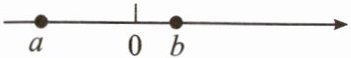 12. 有理数$a$与$b$在数轴上的位置如图所示,用“$>$”或“$<$”填空: