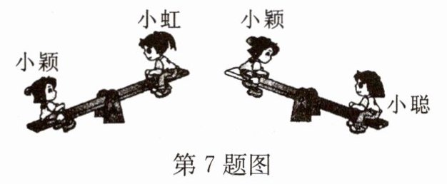 7. 小颖、小虹和小聪三人去公园玩跷跷板,如图所示,她们三人的体重分别为$a,b,c$.从示意图可知她们三人体重的大小关系是