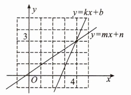 8. 如图是一次函数$y=kx+b$与$y=mx+n$的图象,则关于$x$的不等式$kx+b>mx+n$的解集是