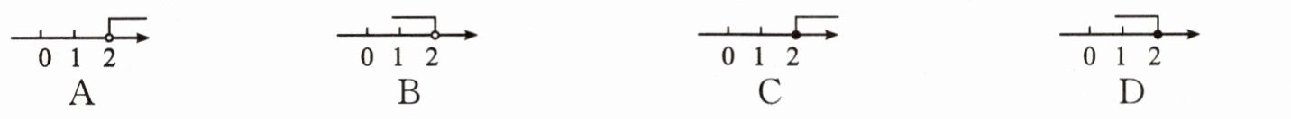 5. 一次函数$y=kx+b$的图象如图所示,则不等式$kx+b≤0$的解集在数轴上表示为(