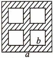 11. 如图所示,在一个边长为$ a $的正方形木板上,挖掉四个边长为$ b $的小正方形,计算当$ a=18 $分米,$ b=6 $分米时,剩余部分的面积$ S $.
