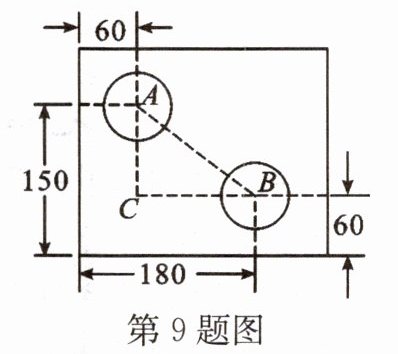 9. 如图是一个外轮廓为长方形的机器零件平面示意图,根据图中的尺寸(单位:mm),计算得出两孔中心 A,B 间的距离为
