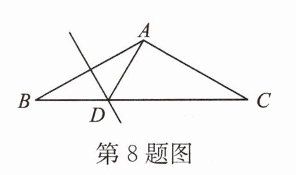 8. 如图所示,AB=AC,∠BAC=120°,AB的垂直平分线交BC于点D,则∠ADC=