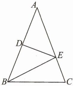 13. 如图所示,在△ABC中,AB=AC,AB的垂直平分线交AC于点E,垂足为点D. 已知△BCE的周长为8,AC-BC=2,求AB与BC的长.
