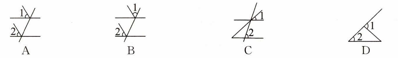 1. 在下列图中,$∠1$和$∠2$是同位角的是(