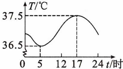 1. 正常人的体温一般在 $ 37^{\circ}C $ 左右,但一天中的不同时刻不尽相同. 如图反映了一天 24 小时内小明体温的变化情况,下列说法错误的是(
