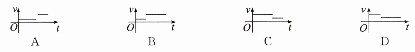 2. 伟伟从学校匀速回家,刚到家发现当晚要完成的试卷忘在学校了,于是马上以更快的速度匀速原路返回学校. 这一情景中,速度 $ v $ 和时间 $ t $ 之间关系的图象(不考虑图象端点情况)大致是(
