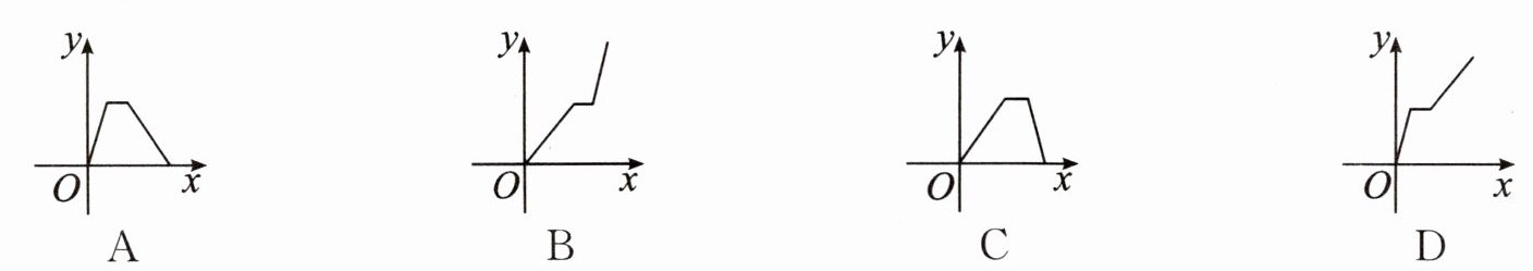 4. 某运输公司的一艘轮船在长江上航行,往返于甲、乙两地. 假设轮船在静水中的速度不变,长江的水流速度不变,该轮船从甲地出发,逆水航行到乙地,停留一段时间(卸货、装货、加燃料等),又顺水航行返回甲地. 若该轮船从甲地出发后所用的时间为 $ x $,轮船与甲地的距离为 $ y $,则下列各图中,能够反映 $ y $ 与 $ x $ 之间关系的大致图象是(