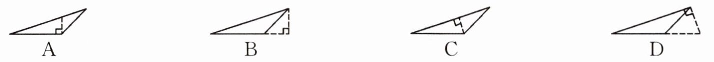 4. 小华在电话中问小明:“已知一个三角形三边长分别是4,9,12,如何求这个三角形的面积?”小明提示说:“可通过作最长边上的高来求解.”小华根据小明的提示作出的图形正确的是 (