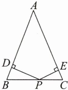 10. 如图所示,已知在△ABC中,AB=AC=4,P是BC边上任意一点,PD⊥AB,PE⊥AC,点D,E为垂足.若△ABC的面积为6,则PD+PE的值是否能确定? 若能确定,请求出此值;若不能确定,请说明理由.