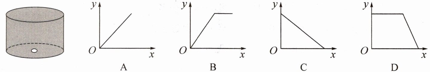 5. 如图是我国古代计时器“漏壶”的示意图,在壶内盛一定量的水,水从壶底的小孔漏出,壶壁内画有刻度,人们根据壶中水面的位置计时,用 $ x $ 表示时间, $ y $ 表示壶底到水面的高度,则 $ y $ 与 $ x $ 的函数关系的图象是(