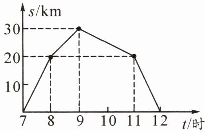 (3)整个外出过程的平均速度为$30\times 2\div (12-7)=12(km/h)$.