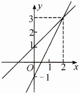 5. 如图,在同一平面直角坐标系内作出的一次函数 $ y _ { 1 } $,$ y _ { 2 } $ 的图象。设 $ y _ { 1 } = k _ { 1 } x + b _ { 1 } $,$ y _ { 2 } = k _ { 2 } x + b _ { 2 } $,则方程组 $ \left\{ \begin{array} { l } { y _ { 1 } = k _ { 1 } x + b _ { 1 }, } \\ { y _ { 2 } = k _ { 2 } x + b _ { 2 } } \end{array} \right. $ 的解是 (