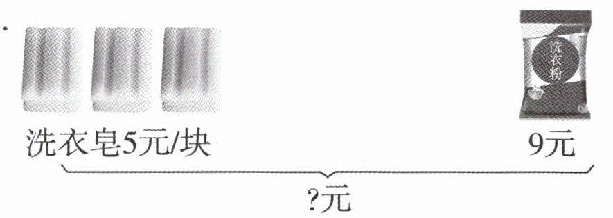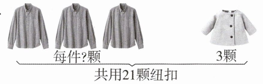1. $ 3 \times 5 + 9 = 24 $(元)2. $ ( 21 - 3 ) \div 3 = 6 $(颗)