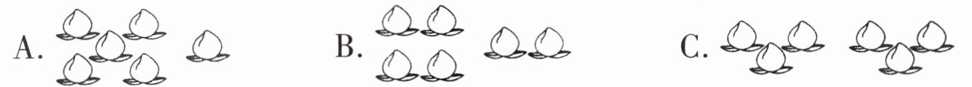 4. 把 6 个桃平均分给 2 个小朋友,下列分法是平均分的是(