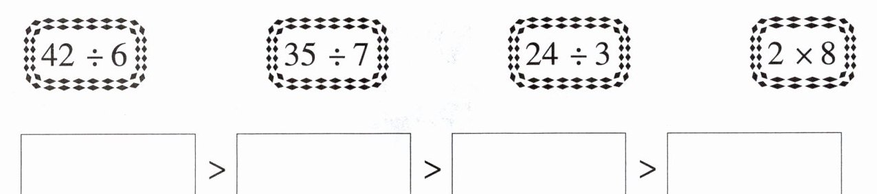 2×8>24÷3>42÷6>35÷7