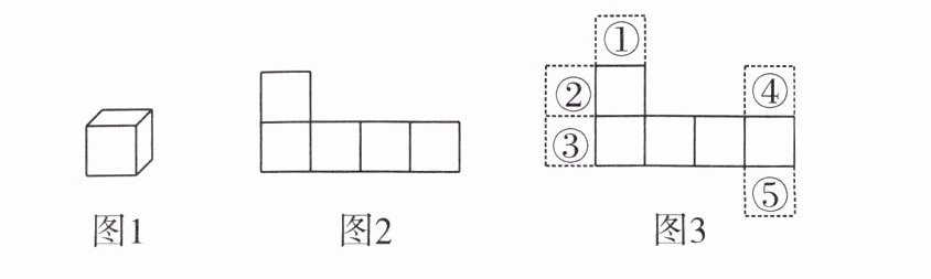 1. 立方体(图1)展开有6个面,图2给出了5个面,请从图3的①~⑤中选一个组成正方体的展开图,这个面是(