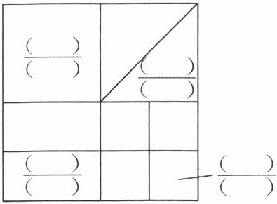 1. 如下图,填上适当的分数表示每个小图形是大正方形的几分之几。