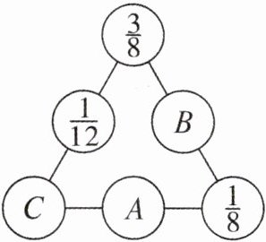 )}=\frac{7}{8}$2. 图中三角形每条边上的三个数的和都相等。$A$、$B$、$C$三个数中,可以确定的是(