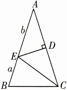 10. 如图,在 $ \triangle A B C $ 中,$ A B = A C $, $ \angle B A C = 36 ^ { \circ } $, $ D E $ 是线段 $ A C $ 的垂直平分线,若 $ B E = a $, $ A E = b $,则用含 $ a $、$ b $ 的代数式表示 $ \triangle A B C $ 的周长为