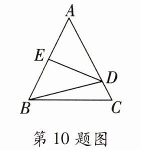 10. 如图,在等腰$△ABC$中,$AB=AC$,DE垂直平分 AB,已知$∠ADE=40^{\circ }$,则$∠DBC=$
