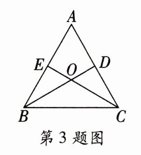 3. 如图,在等边$\triangle ABC$中,$BD$、$CE$是两条中线,则$∠BOC$的度数为(