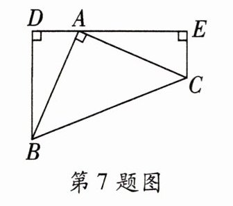 7. 如图,在$\triangle ABC$中,$∠BAC=90^{\circ }$,$AB=AC$,分别过$B$、$C$两点作过$A$的直线的垂线$BD$、$CE$,垂足分别为点$D$、$E$,若$BD=5$,$CE=2$,则$DE$的长为(