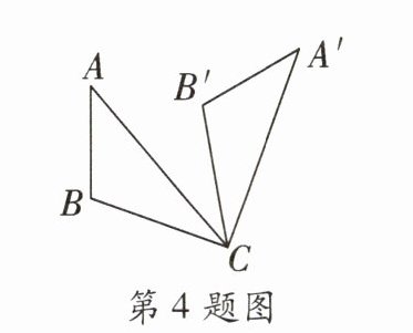 4. 如图,将 $ \triangle A B C $ 绕着点 $ C $ 顺时针旋转 $ 60 ^ { \circ } $ 后到 $ \triangle A ^ { \prime } B ^ { \prime } C $,若 $ \angle A = 40 ^ { \circ } $,$ \angle B = 110 ^ { \circ } $,则 $ \angle B C A ^ { \prime } $ 的度数是(