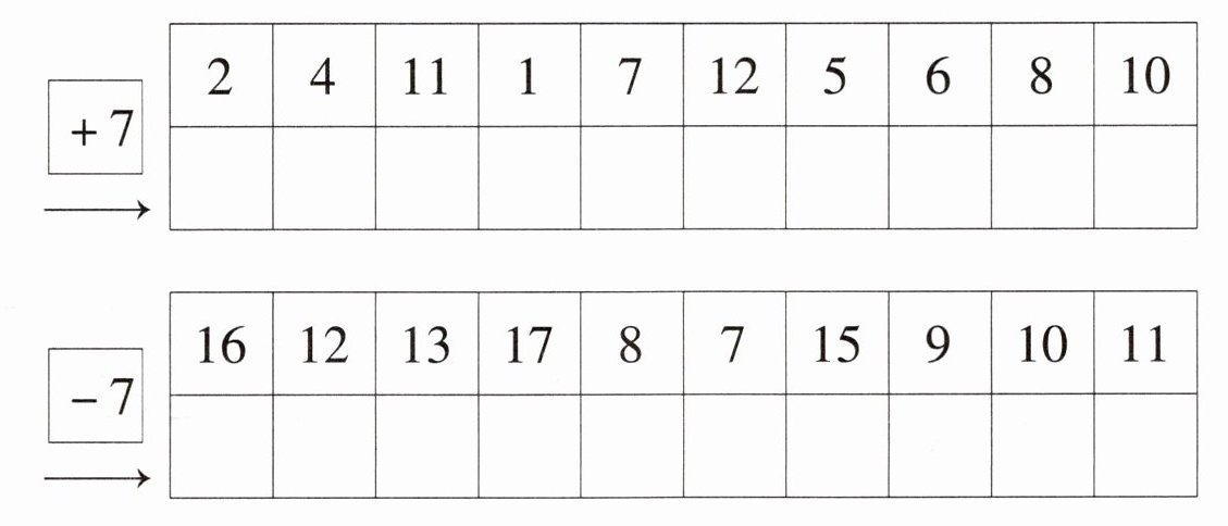 四、移动$\boldsymbol{7}$,算一算,把计算的结果填在$□$内。
