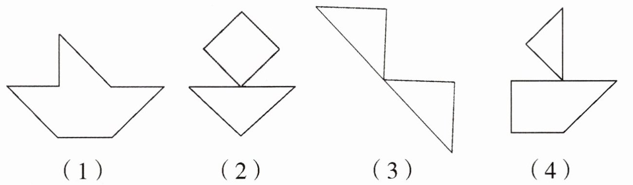 四、找出下面哪些图形是用4个相同的三角形拼成的。