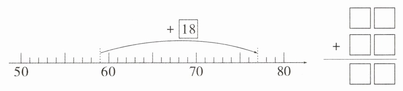 $\begin{array}{r}59\\ + 18\\ \hline77\end{array}$ $\begin{array}{r}76\\ - 18\\ \hline58\end{array}$