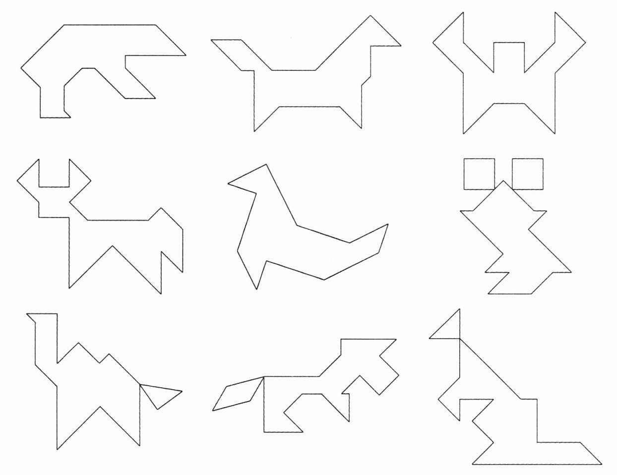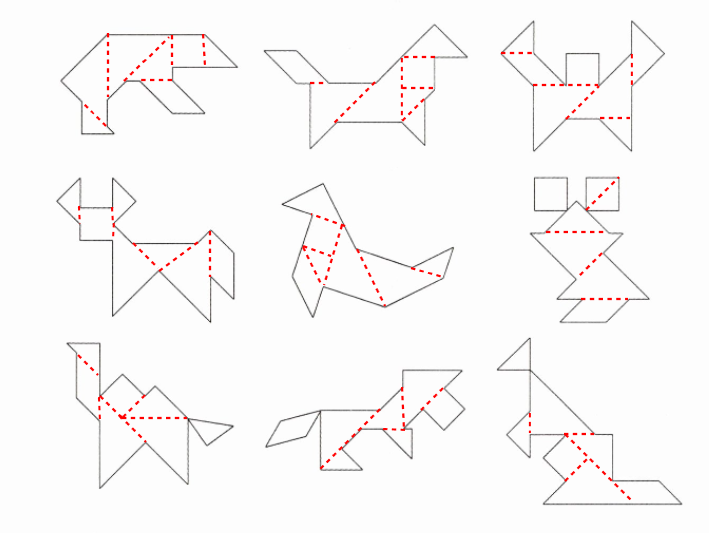 五、用七巧板拼一拼,将你的拼法用虚线画一画。