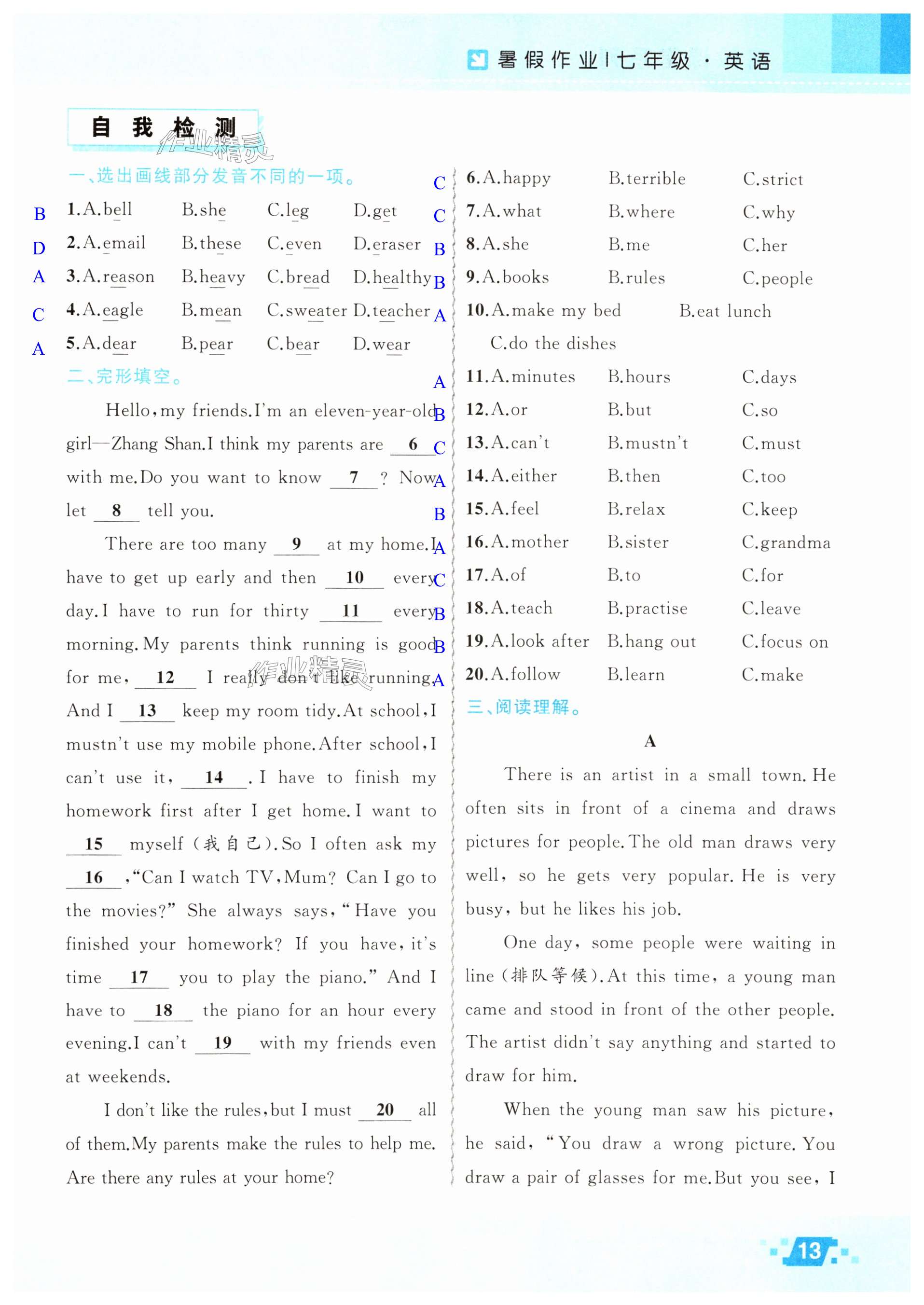 2025年暑假作业新疆青少年出版社七年级英语人教版