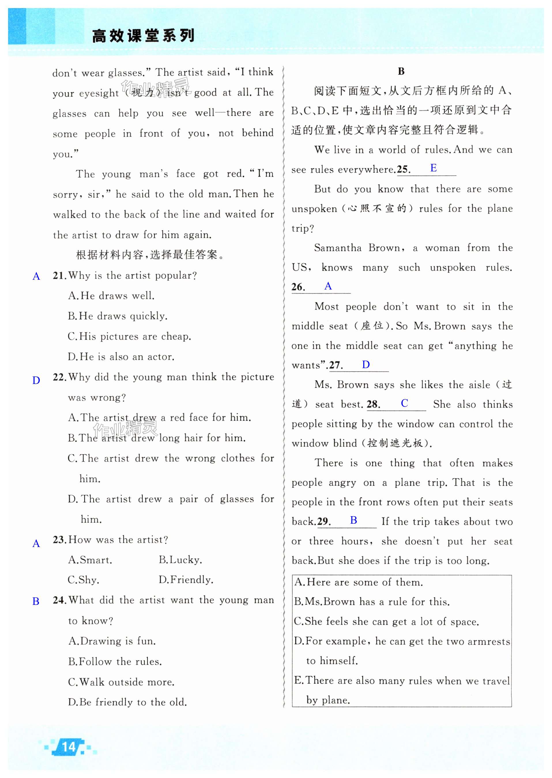 注:目前有些书本章节名称可能整理的还不是很完善,但都是按照顺序排列的,请同学们按照顺序仔细查找。练习册 2025年暑假作业新疆青少年出版社七年级英语人教版 答案主要是用来给同学们做完题方便对答案用的,请勿直接抄袭。