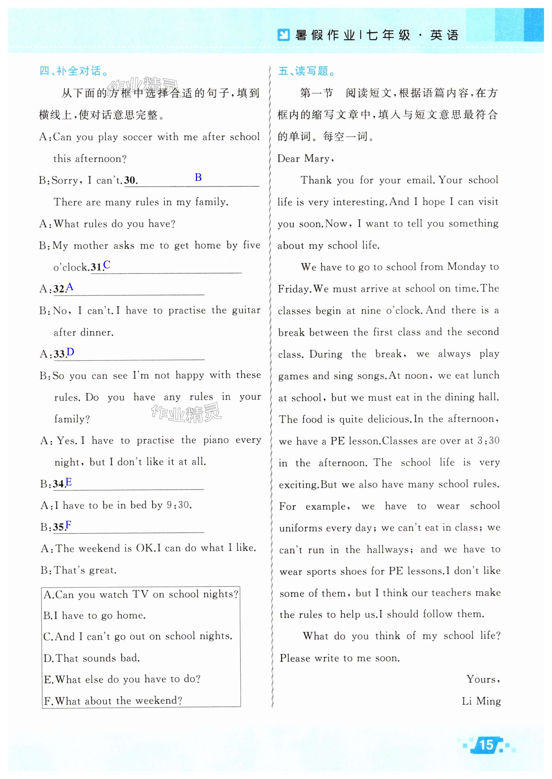 注:目前有些书本章节名称可能整理的还不是很完善,但都是按照顺序排列的,请同学们按照顺序仔细查找。练习册 2025年暑假作业新疆青少年出版社七年级英语人教版 答案主要是用来给同学们做完题方便对答案用的,请勿直接抄袭。