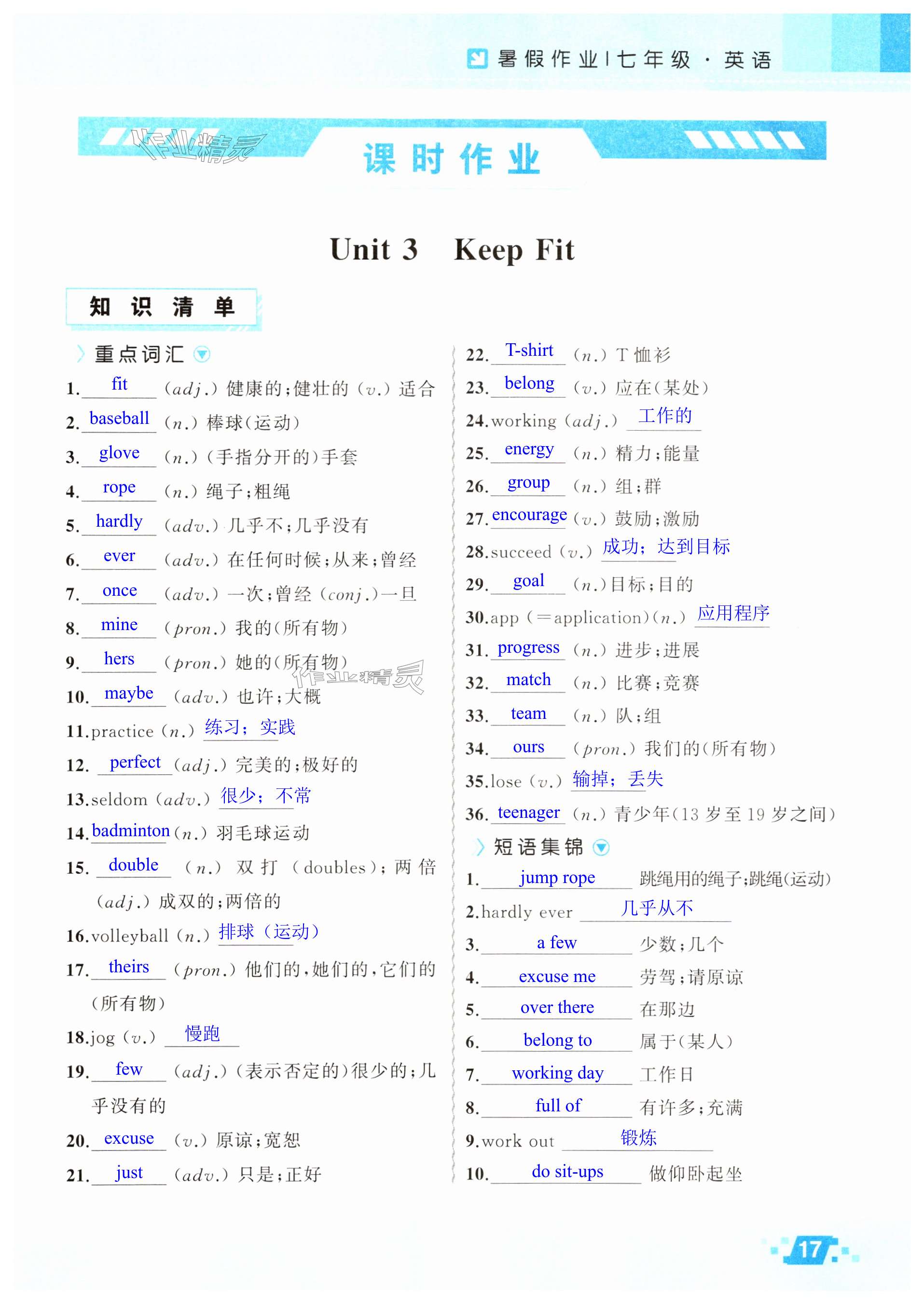 注:目前有些书本章节名称可能整理的还不是很完善,但都是按照顺序排列的,请同学们按照顺序仔细查找。练习册 2025年暑假作业新疆青少年出版社七年级英语人教版 答案主要是用来给同学们做完题方便对答案用的,请勿直接抄袭。