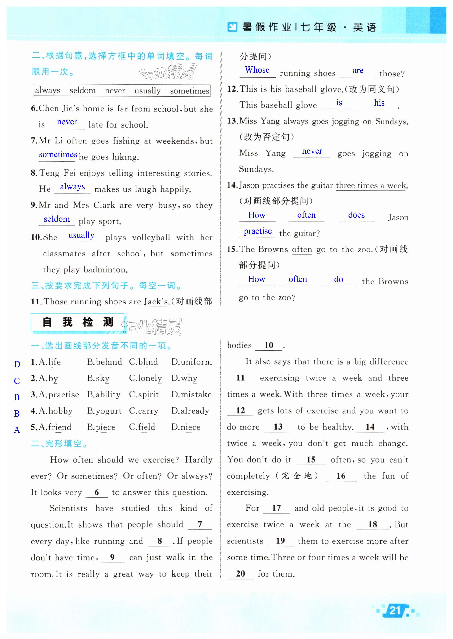 注:目前有些书本章节名称可能整理的还不是很完善,但都是按照顺序排列的,请同学们按照顺序仔细查找。练习册 2025年暑假作业新疆青少年出版社七年级英语人教版 答案主要是用来给同学们做完题方便对答案用的,请勿直接抄袭。