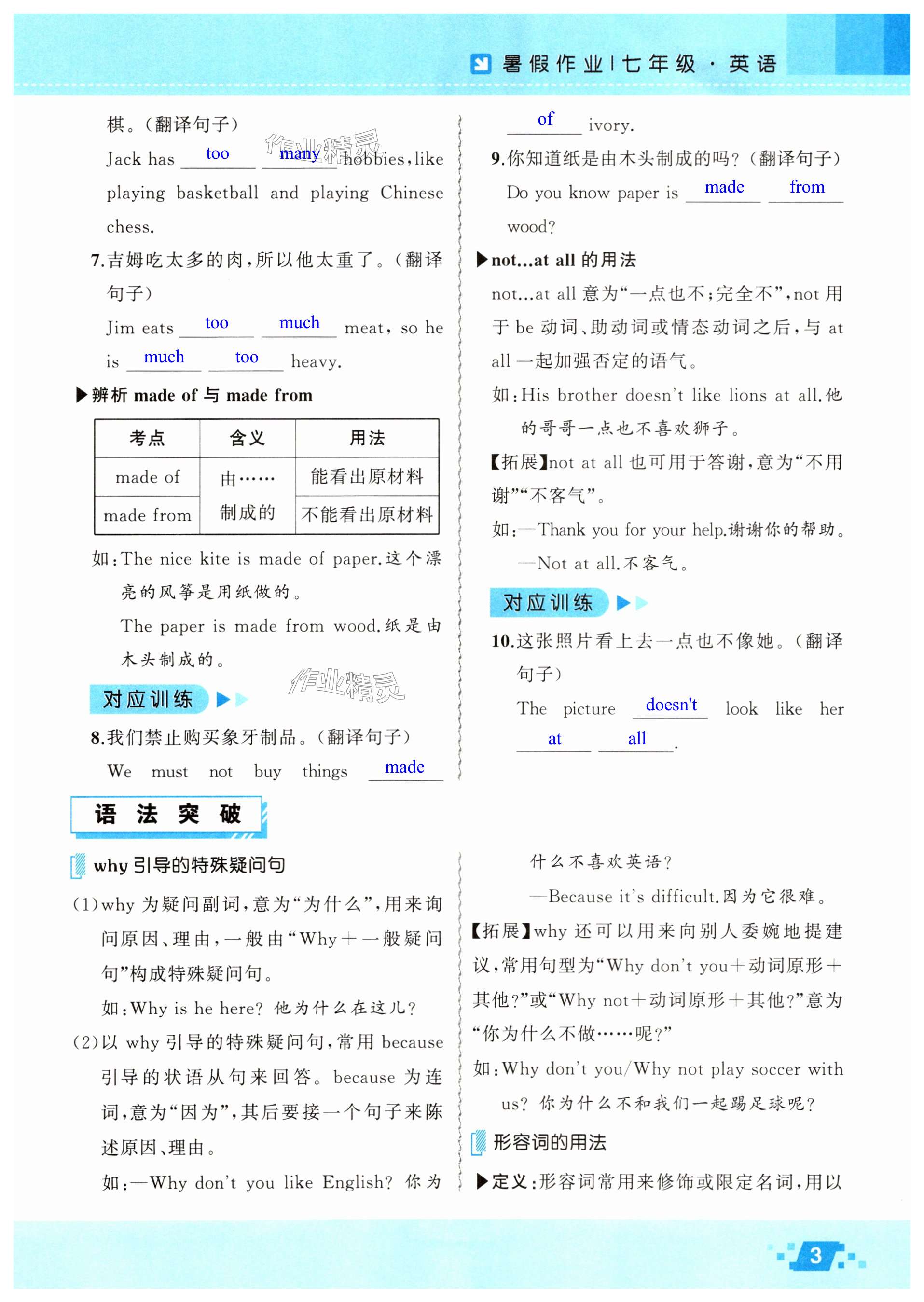 注:目前有些书本章节名称可能整理的还不是很完善,但都是按照顺序排列的,请同学们按照顺序仔细查找。练习册 2025年暑假作业新疆青少年出版社七年级英语人教版 答案主要是用来给同学们做完题方便对答案用的,请勿直接抄袭。