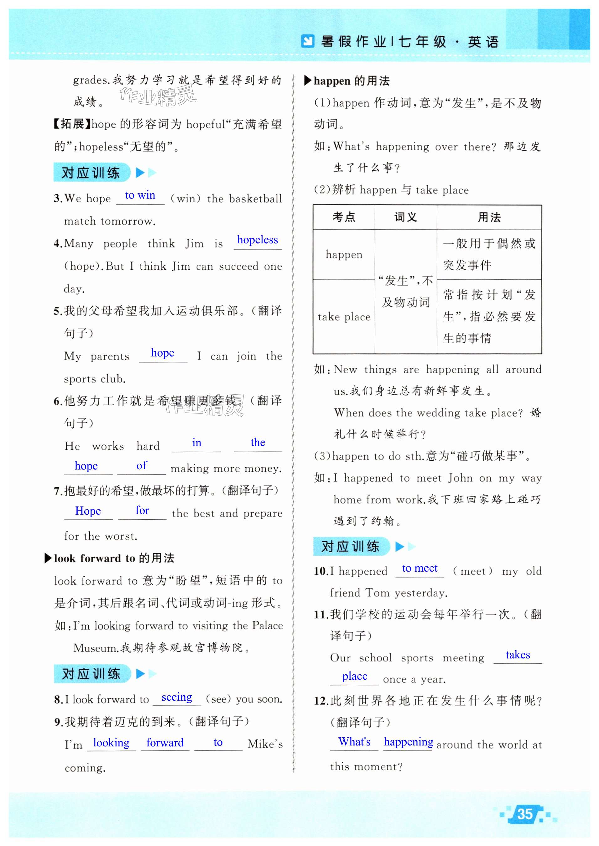注:目前有些书本章节名称可能整理的还不是很完善,但都是按照顺序排列的,请同学们按照顺序仔细查找。练习册 2025年暑假作业新疆青少年出版社七年级英语人教版 答案主要是用来给同学们做完题方便对答案用的,请勿直接抄袭。