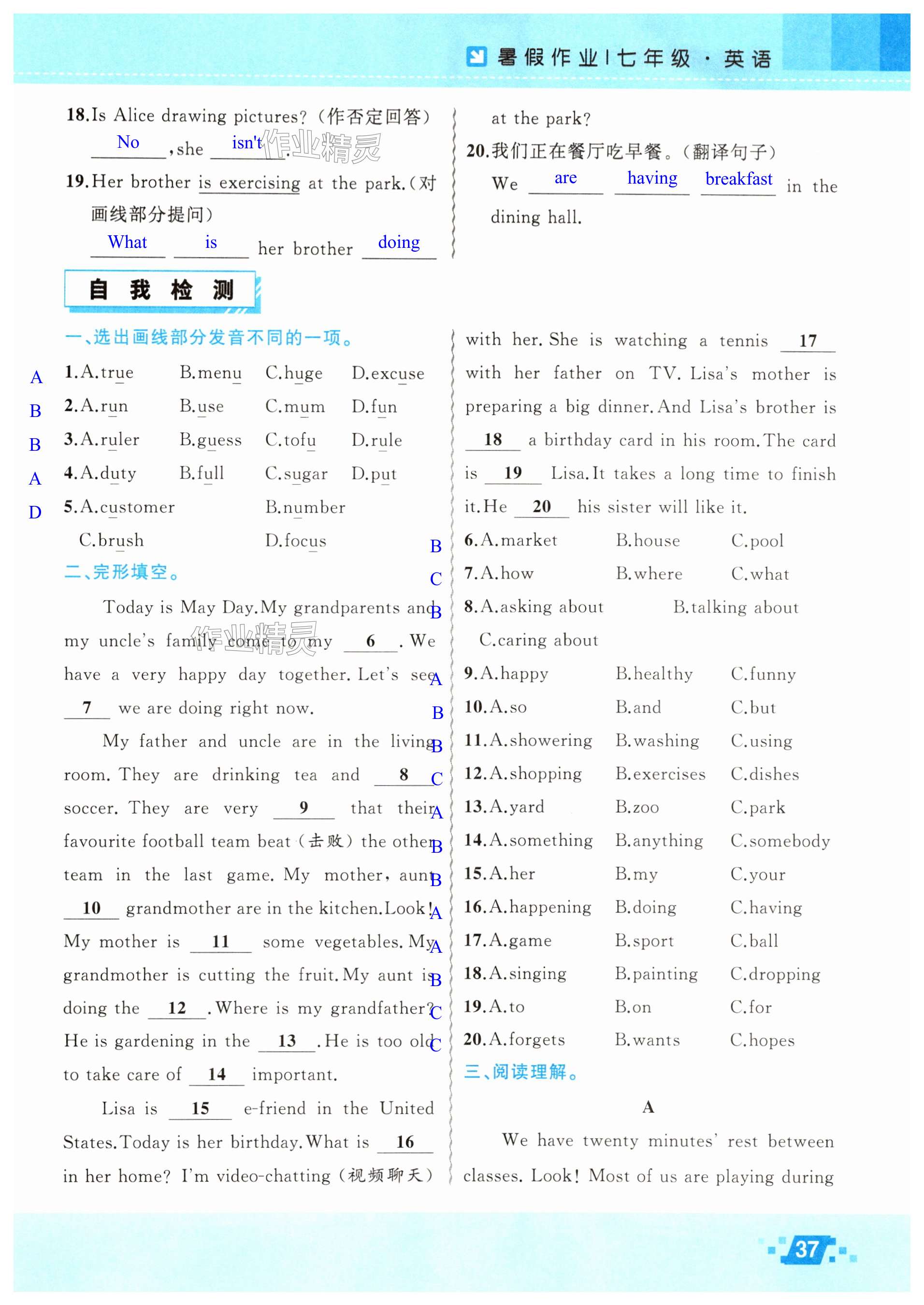 注:目前有些书本章节名称可能整理的还不是很完善,但都是按照顺序排列的,请同学们按照顺序仔细查找。练习册 2025年暑假作业新疆青少年出版社七年级英语人教版 答案主要是用来给同学们做完题方便对答案用的,请勿直接抄袭。