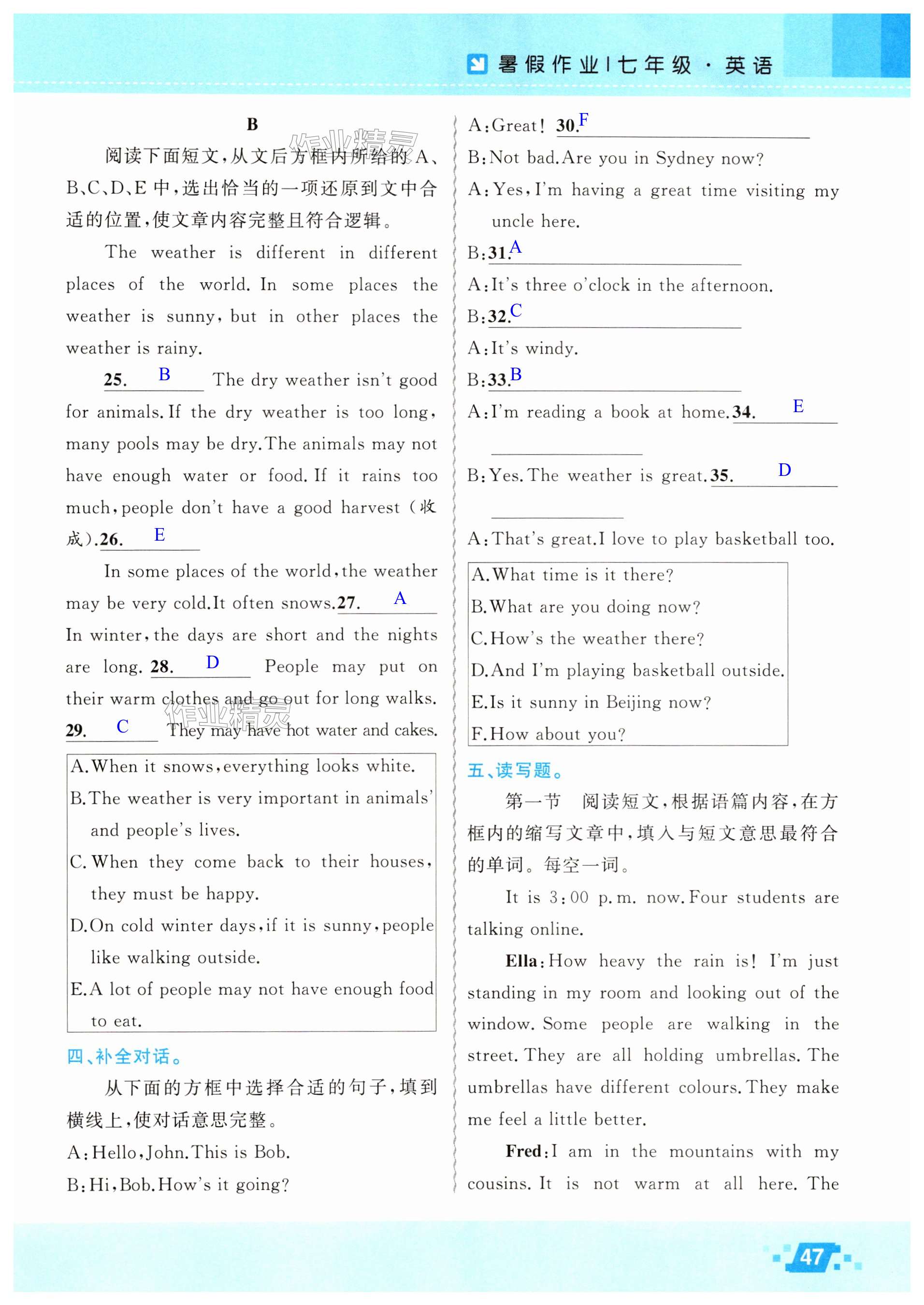 注:目前有些书本章节名称可能整理的还不是很完善,但都是按照顺序排列的,请同学们按照顺序仔细查找。练习册 2025年暑假作业新疆青少年出版社七年级英语人教版 答案主要是用来给同学们做完题方便对答案用的,请勿直接抄袭。