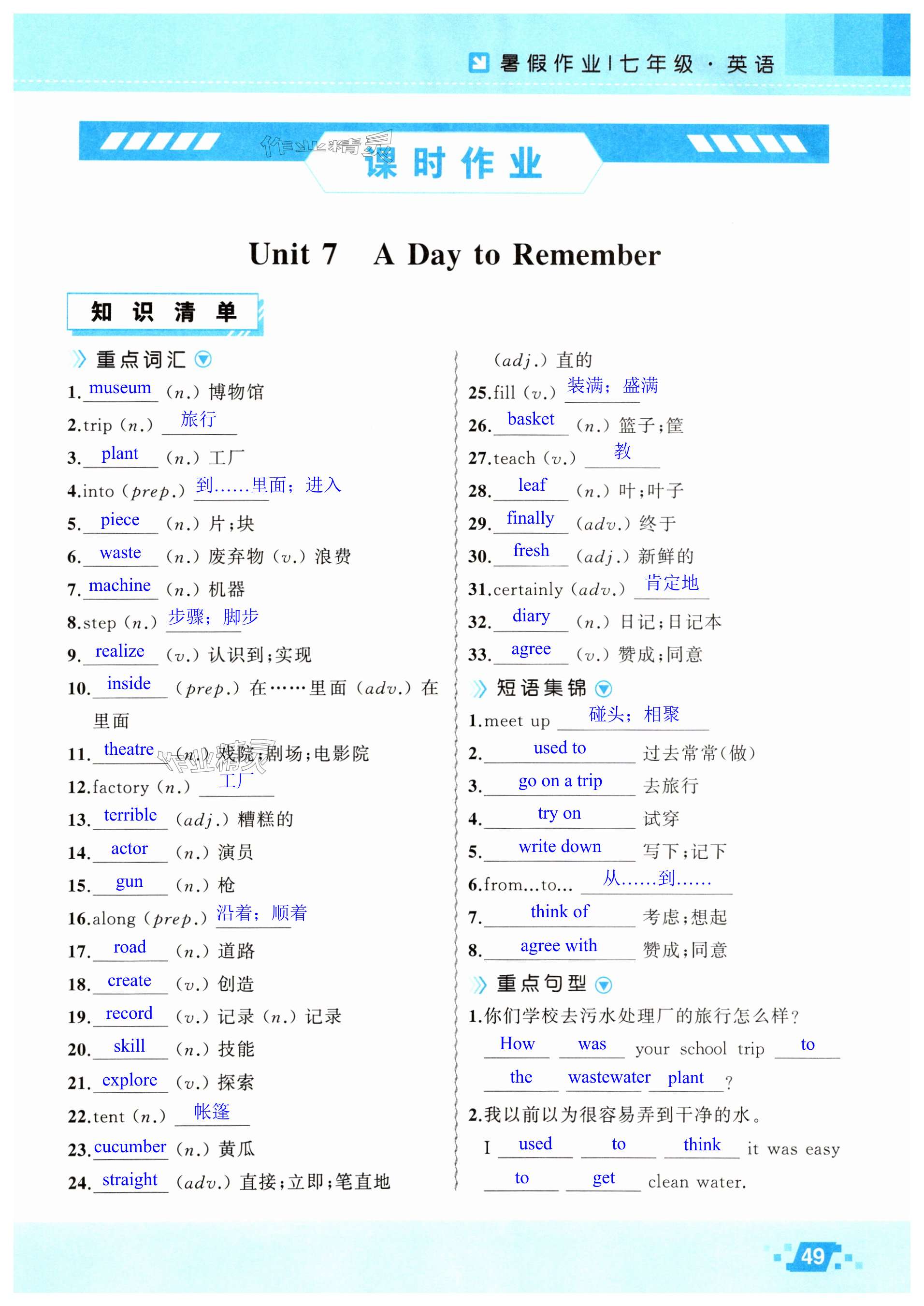 注:目前有些书本章节名称可能整理的还不是很完善,但都是按照顺序排列的,请同学们按照顺序仔细查找。练习册 2025年暑假作业新疆青少年出版社七年级英语人教版 答案主要是用来给同学们做完题方便对答案用的,请勿直接抄袭。