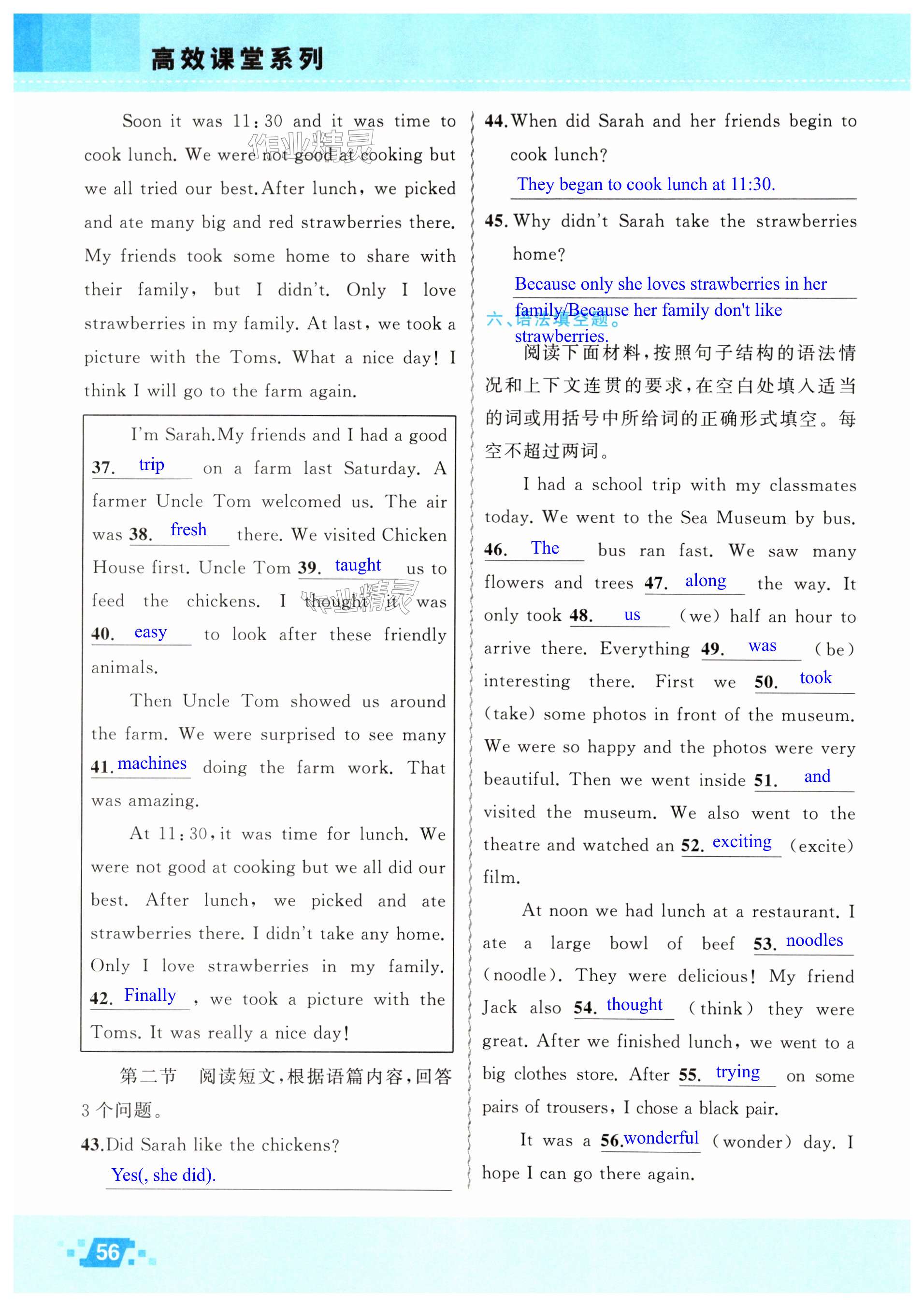 注:目前有些书本章节名称可能整理的还不是很完善,但都是按照顺序排列的,请同学们按照顺序仔细查找。练习册 2025年暑假作业新疆青少年出版社七年级英语人教版 答案主要是用来给同学们做完题方便对答案用的,请勿直接抄袭。